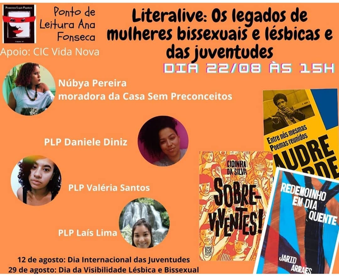 “Flyer do Evento Literalive, o legado de mulheres Lesbicas e Bisexuais e das juventudes.”